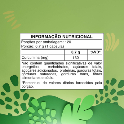 Cúrcuma (Curcuma longa), extrato de rizomas de Curcuma longa e glaceante hidroxipropilmetilcelulose (cápsula vegetal).