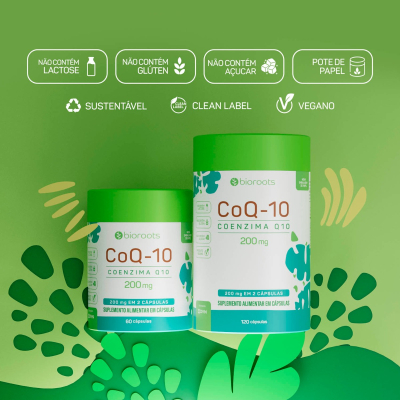 Com composição com 200 mg por porção (equivalente a duas cápsulas), a CoQ10 da Bioroots possui fórmula 100% vegana, com ingredientes limpos e livre de lactose, glúten, açúcares ou transgêncios.