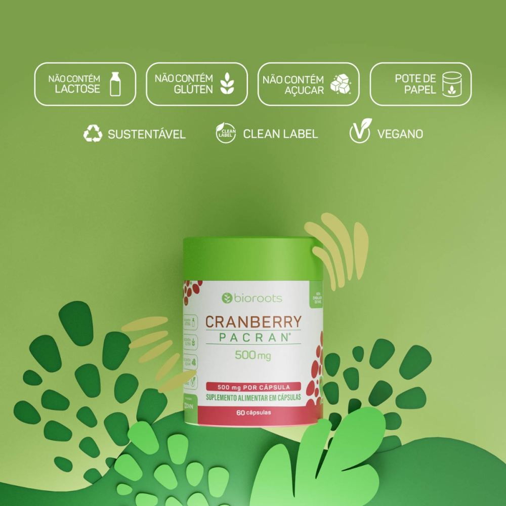O Cranberry é uma fruta pequena e vermelha, muito rica em Vitamina C, proantocianidina e flavonoides. O Cranberry da Bioroots é feito com a matéria-prima Pacran®, obtido do fruto inteiro e que fornece um espectro completo de cranberry com um nível padronizado de proantocinadinas bioativas (PACs), assim como outros componentes-chave, tais como fenóis, ácidos orgânicos, fibras, ácidos graxos, proteínas e açúcares.