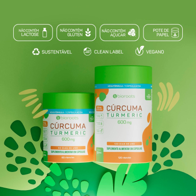 A Cúrcuma Turmeric 600mg da Biorrots é um suplemento nutricional 100% natural à base de extrato seco de cúrcuma, oferecendo 600mg de Extrato Seco + 130mg de Curcumina por cápsula.
